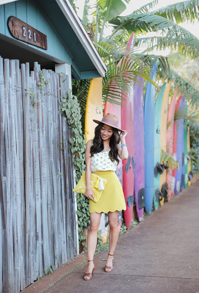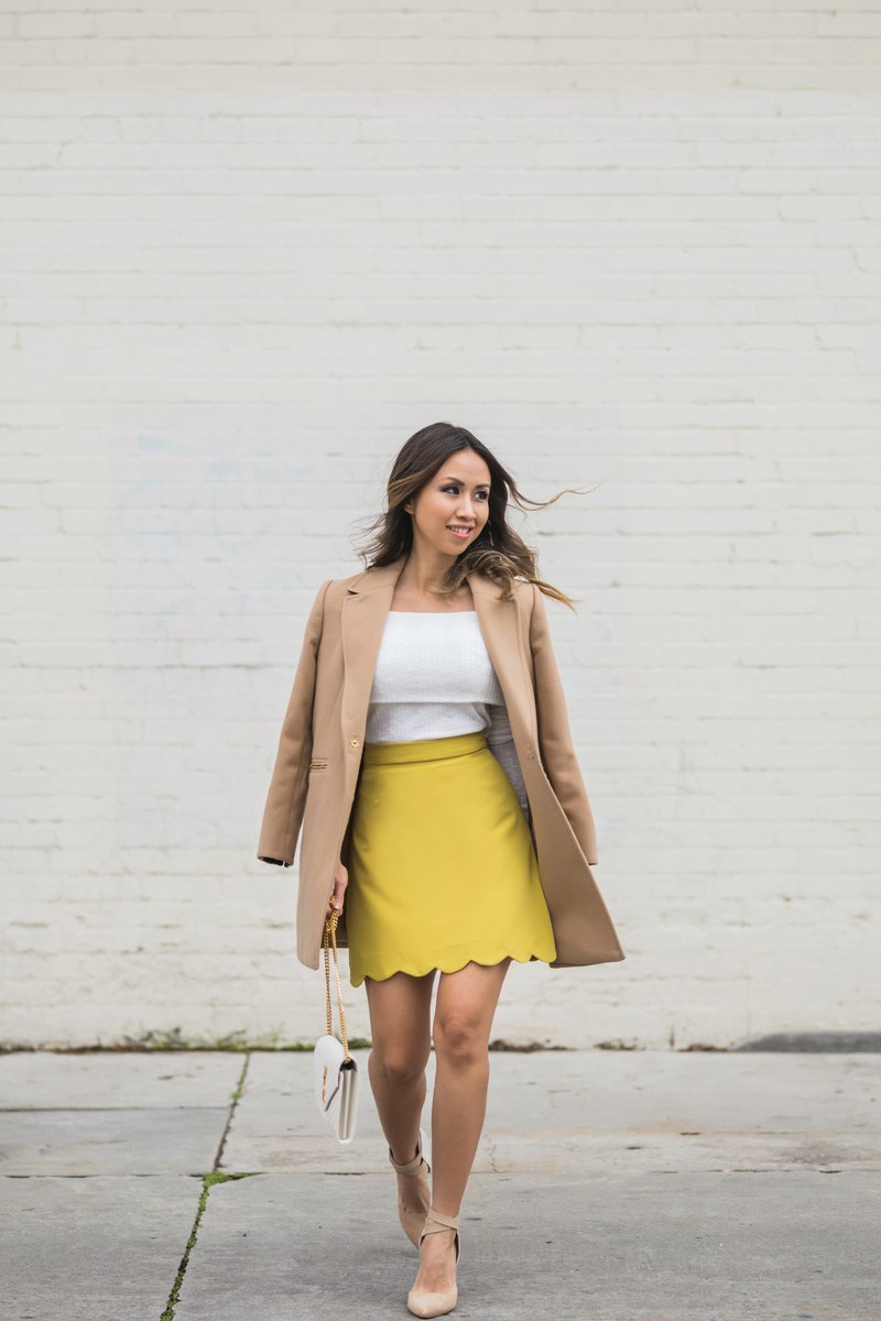 34. Saia amarela + casaco mescla elegância com muito estilo