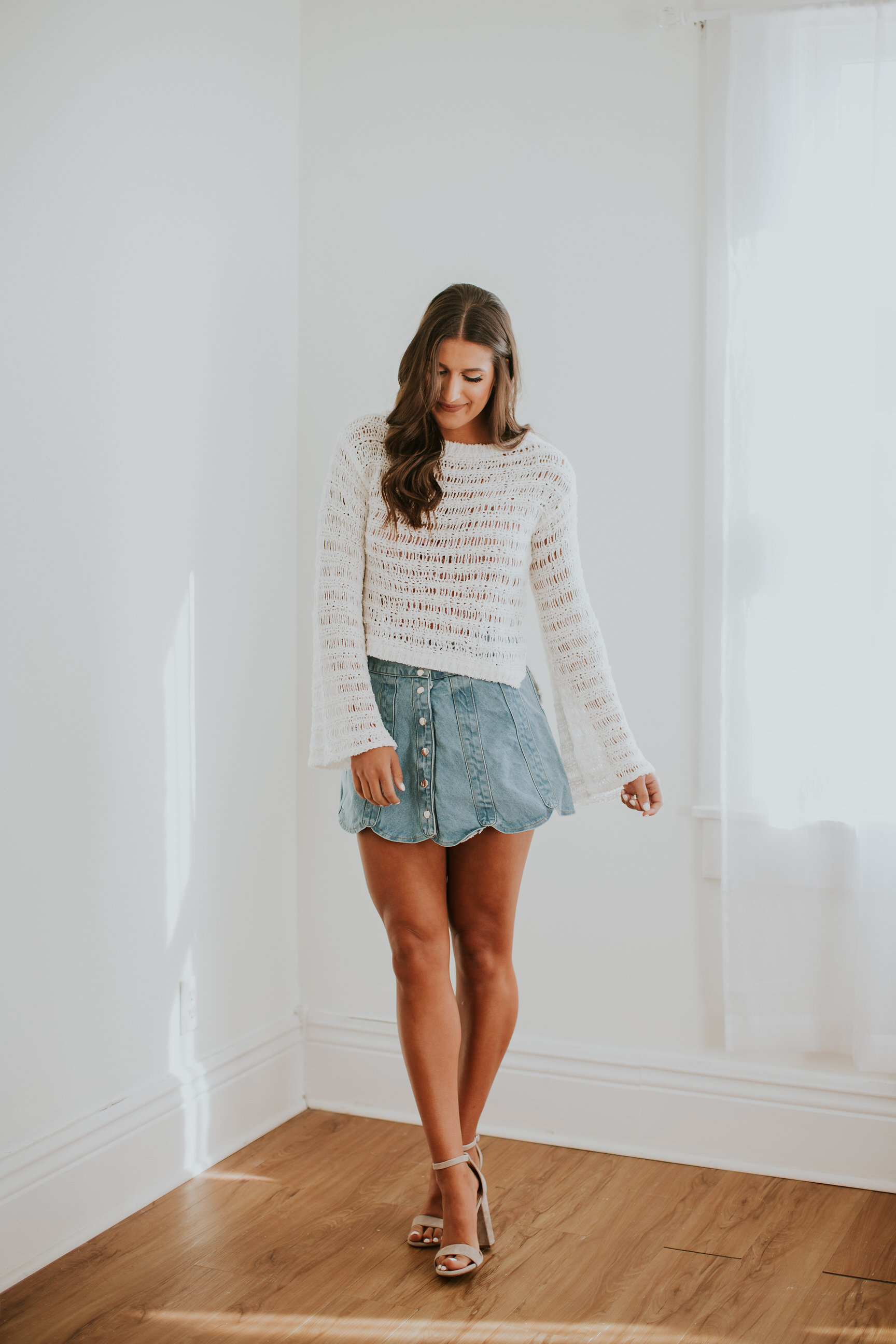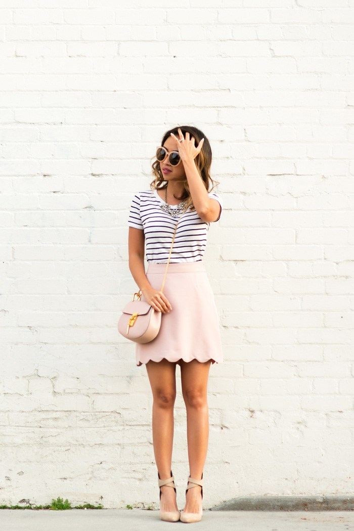 Também conhecida como scalloped, a saia nuvem é a saia com barra de ondinhas, que lembram uma nuvem. Charmosa e romântica, a peça pode fazer parte de looks vintage até os mais contemporâneos e cheios de estilo. Além disso, o modelo pode ser combinado durante o ano todo, com sobreposições e botinhas no inverno e com t-shirts e sandália no verão.
